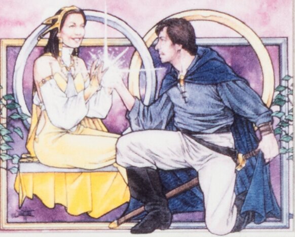 Allows Richard to propose marriage to Lily. If the proposal is accepted both players win; mix the cards in play, both libraries, and both graveyards as a shared deck.